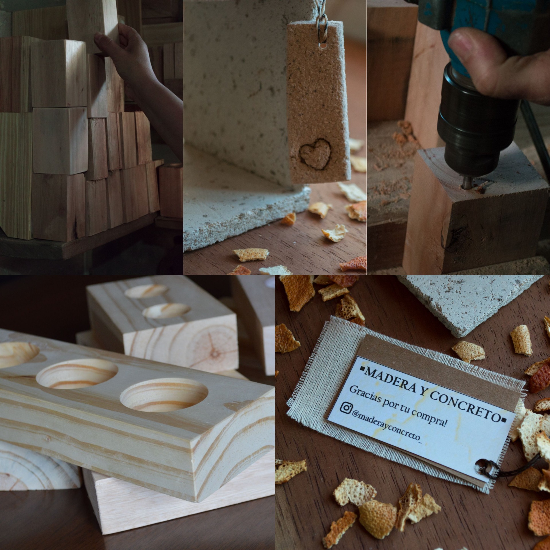 Nosotros somos "Madera y concreto", un pequeño emprendimiento familiar. En nuestra página van a encontrar objetos de decoración artesanal para darle un estilo único y calidez a tu hogar.